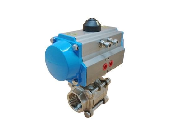 Válvula de bola atuada pneumática de aço inoxidável válvula rosqueada 3 partes DN50 DN65 DN80